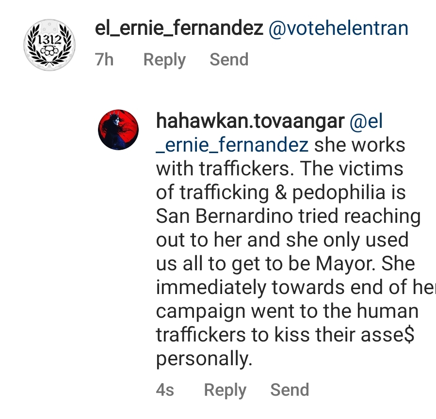 The previous mayor of San Bernardino was a sexual predator named John Valdivia. The current mayor of San Bernardino Helen tran worked previously as human resources director where she backed Valdivia the whole way. Multiple of Valdivias victims came forward to Helen tran about the sexual abuse by Valdivia. Helen tran threatened them and fired them. For that Helen tran got over 100% pay raise where she made 117% more than the rest of the city employees and 131.4 % higher than the national average for government employees. Found this out after myself who is labor trafficked by masons in San Bernardino as well as other trafficked and abused by corrupt politicians/law enforcement/public services etc online reached out to Helen tran while she was running for mayor. Helen tran assured us victims of trafficking she would help us if she won mayor. One week before voting Helen took photos with San Bernardino pedophiles and traffickers showing her support for them. San Bernardino is VERY CORRUPT.